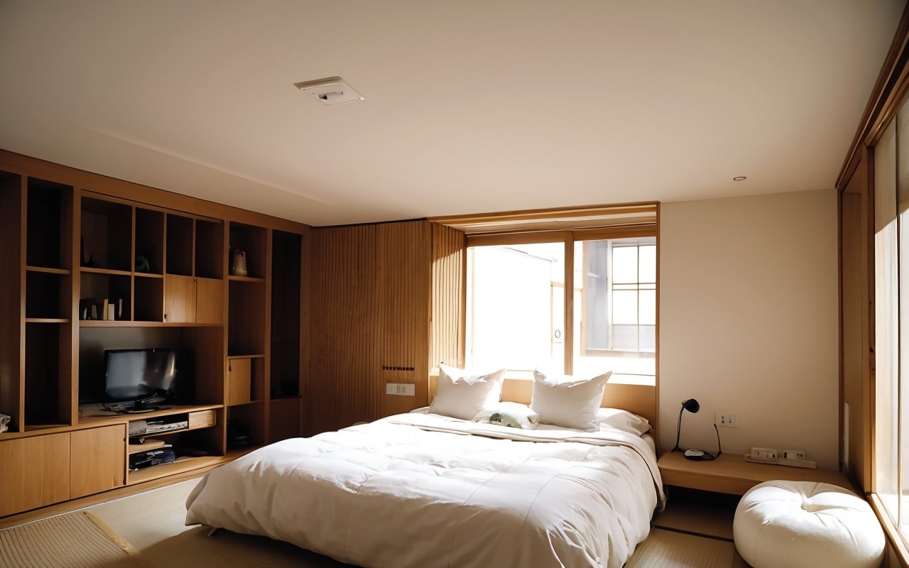 Спальня в стиле Джапанди должна быть напоена спокойствием и гармонией. Выберите для неё уютную кровать с простой, но качественной текстильной отделкой. Обязательно добавьте растения и освещение, которое позволит создать атмосферу уюта. Применяйте неброские, спокойные оттенки и избегайте перегруженности при декорировании.