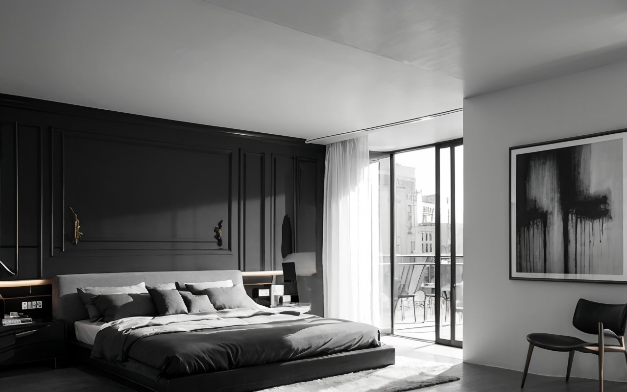 Спальня — еще одно место, где монохромный интерьер будет уместен. Вы можете выбрать мягкие нежные оттенки, чтобы создать расслабляющую атмосферу. Правильное освещение поможет создать ощущение уюта и уединения.